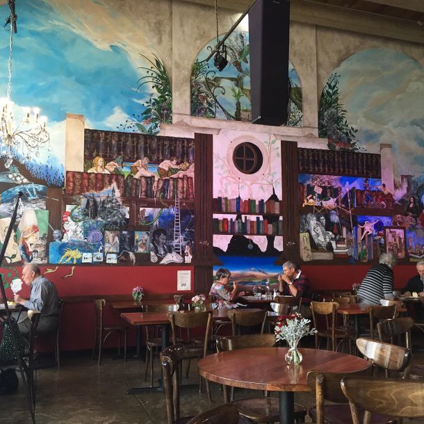 Tucked into the heart of George Street’s arts and theatre district, Barista has been a beloved local institution since the 1990s. Originally launched as Barista – The Espresso Bar, it was reimagined in 2009 with a fresh look and creative flair. The café’s striking interior features a hand-painted mural by former owner Steve Sayer, who spent over a decade transforming the soaring concrete walls with scenes inspired by the creative energy of the surrounding precinct.